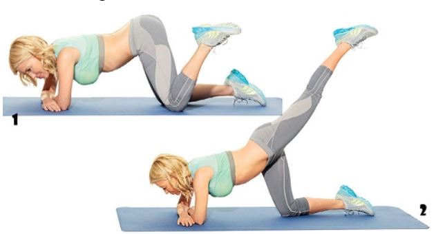 Colocamos mãos e joelhos no chão, e ao mesmo tempo mantemos nosso tronco totalmente ativado, contraído. Então levantamos uma perna para cima, como um chute, de forma que o joelho se mantenha a 90 graus. O exercício será mais completo se realizado com maior amplitude, ou seja, se empurrarmos a perna o máximo que conseguirmos até que alcançamos o ar enquanto baixamos as costas. Após realizar repetições com uma perna, deve-se realizar com a outra.